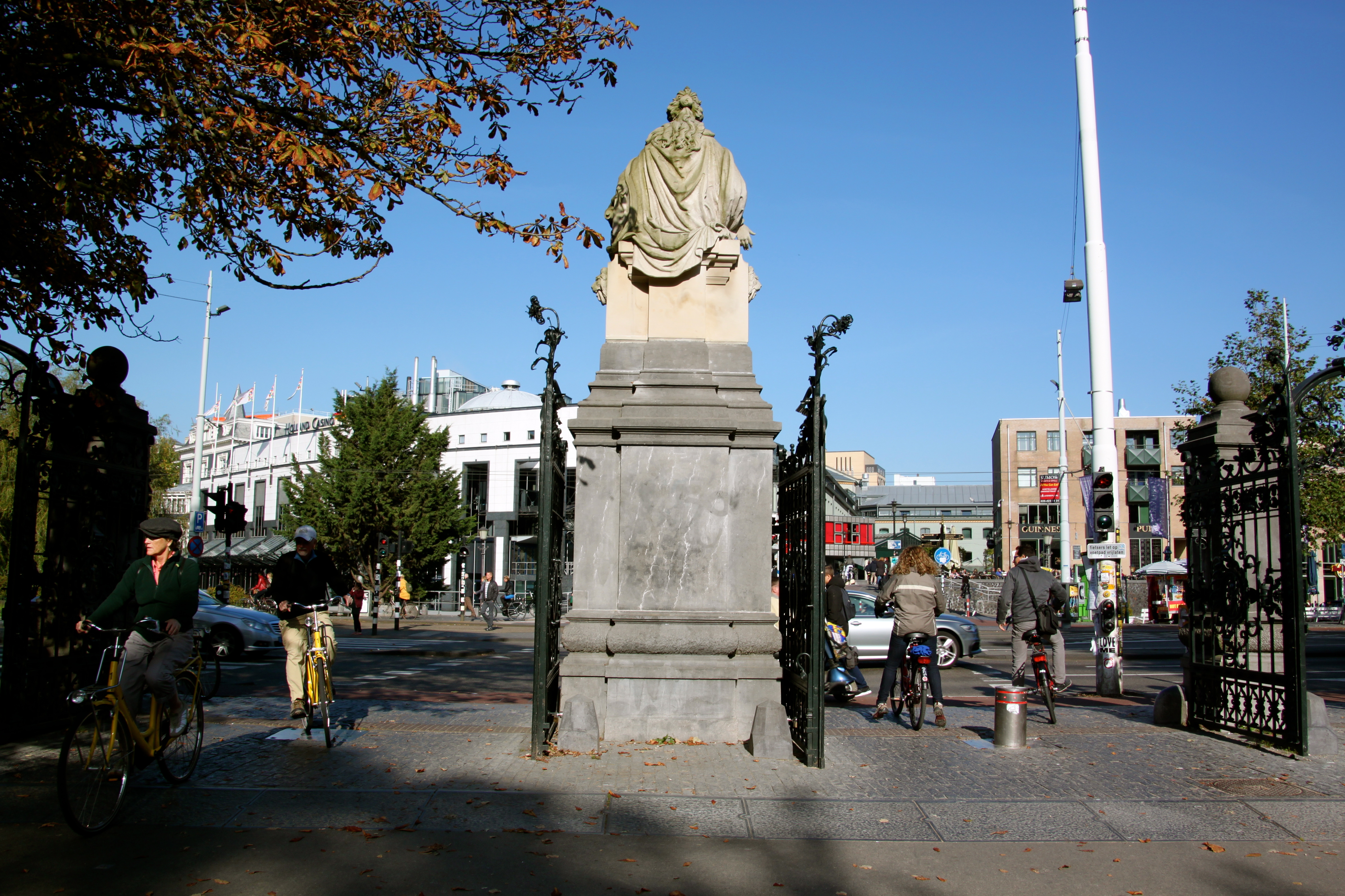 La segunda vez llegué con un grupo de amigos y en una mañana de octubre el sol nos mostró su mejor cara… ¡el sol!  sí ¡el sol! la lluvia había decidido darnos tregua para que pudiéramos disfrutar de cada calle, plaza y para que nos percatáramos de que si hace sol a los holandeses les gusta disfrutar de él, da igual que refresque, hace ¡sol! como en Leidseplein, jóvenes, mayores, músicos, ocupaban las terrazas, yo pasaba por ella al ritmo de mi pedaleo en busca del parque, ¡me encanta volver a las ciudades por segunda vez! Las sientes más tuyas.