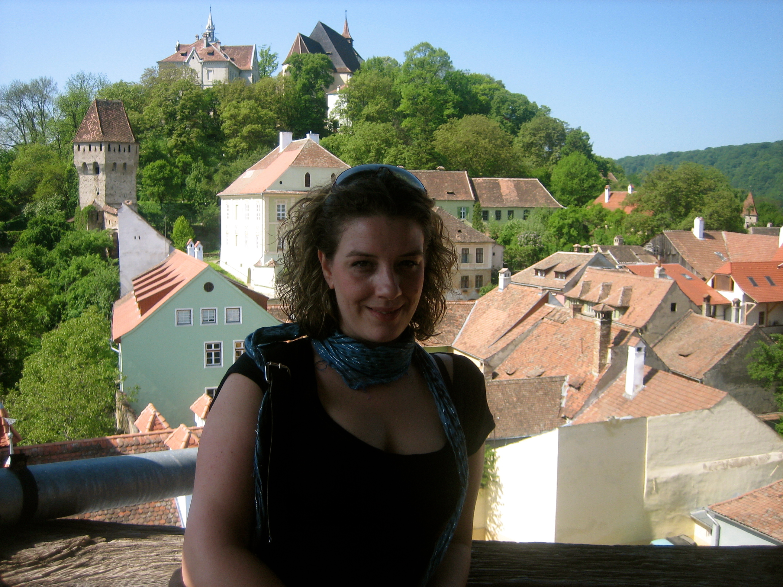 Nosotras ahora subimos al mejor mirador que existe en Sighisoara que es la Torre del Reloj y seguimos visitando la ciudad, pero ahora disfrutando de los rayos del sol y siempre con nuestro gran sentido del humor; ¿Qué hace El Conde Drácula por la noche, subido en un tractor? ¡sembrar el pánico! 😛 .