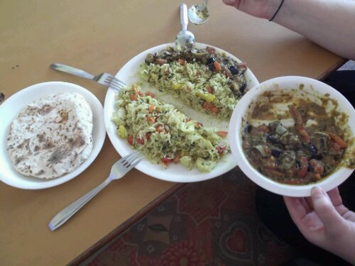 El vuelo a Ahmedabad se retraso un poco, así que nos dimos una pequeña comilona en los puestos del aeropuerto mientras esperábamos, no es un trayecto muy largo pero aún así a Estela siempre le da tiempo a dar una cabezadita ;), no venia mal porque a la llegada de Ahmedabad nos íbamos a tener que dar mucha prisa para llegar a la estación de autobuses, no queríamos llegar muy tarde y tener al padre Joaquín despierto hasta altas horas de la noche.