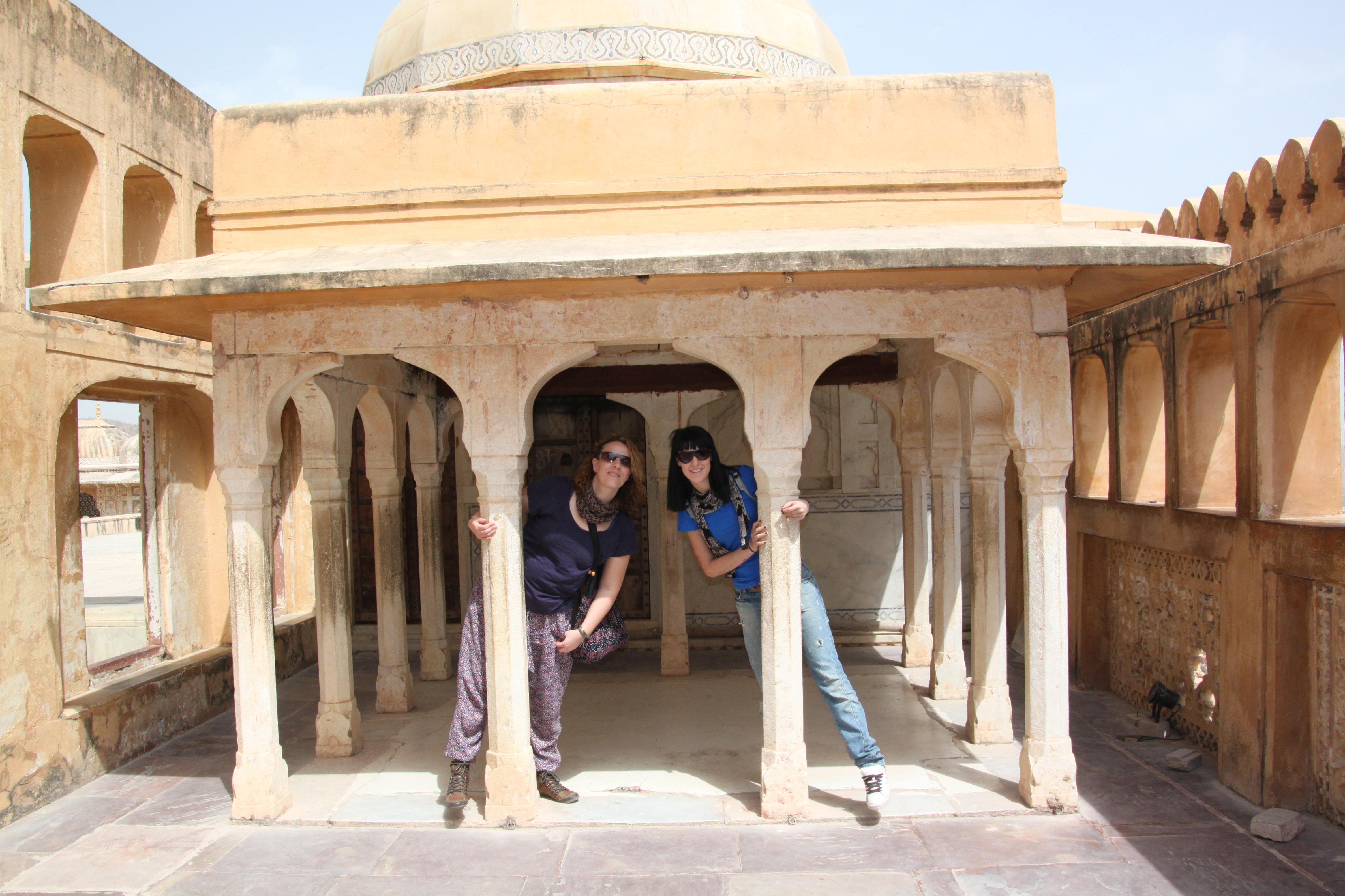 Nos ha costado llegar, tras salir en la búsqueda de un elefante y callejear en rickshaw por la calles de Jaipur, éste ha decido estropearse, con una parada en boxes para arreglarlo y una larga espera; nosotras nos tomamos un pequeño almuerzo con cucaracha gigante en un restaurante que pintaba de alto nivel, ¡si es que las apariencias engañan!, vas a levantar la tapa del azucarero, y toma!! ahí está entremedias de azúcar y sal =S….. Jaja. Nos salimos con nuestro cafecito a la calle, y pasó el peor momento hasta ahora en la India. No es agradable ver a una niña delante tuyo, pedir y pedir dinero, con las moscas comiéndole la cara, saber que no puedes darle una sola moneda, si lo haces, estarás cometiendo un gran error, pero quieres verla sonreír aunque sea por un pequeño instante, así que sacas un paquete de pegatinas justo antes de subirte al tuc tuc y se la das; ves cómo se marcha corriendo súper feliz a enseñárselo a sus padres, los que hubieran preferido que llegara con unas rupias en las manos; una pena la exploración infantil!! La falta de recursos de las familias indias, la extrema pobreza, la miseria les hace obligar a sus hijos a pedir, saben que los niños nos remueven más el alma, no debemos colaborar en que sigan haciéndolo, por mucha pena que nos den.