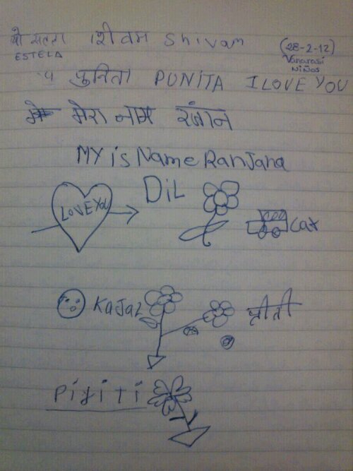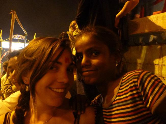 ¡¡¡Llegamos a Varanasi!!!! La primera impresión al bajar es un poco agobiante, el olor, muchas personas, un poco caótico. Al salir decidimos tomar un «autorichard» regateando, que era más económico que de prepago, además de bastante más divertido. Cuando ya íbamos a subirnos en uno conocimos a Marie y Javier, una belga y un extremeño que solo tenían en cambio 30 rp y nos pedían compartir tuc-tuc para conseguir llegar al centro. Iban donde nosotras, más o menos por la misma zona, en busca de hotel como nosotras, asique fuimos juntos. Además qué gustazo hablar en español! Ellos se estaban haciendo un viaje de 5 meses por varios continentes (vuelta al mundo), qué envidiaaaaa!!! El autorickshaw nos dejó bastante lejos del hotel donde queríamos preguntar si había habitaciones…y acabamos andando una hora, mochila al hombro, recorriendo la orilla del Ganges al mediodía, con un calor! Finalmente en ese hotel pedían muucho más dinero del que ponía por internet…, además que eran un poco bordes, asique seguimos buscando y encontramos el MISHRA por 400 rp por noche la habitación doble.