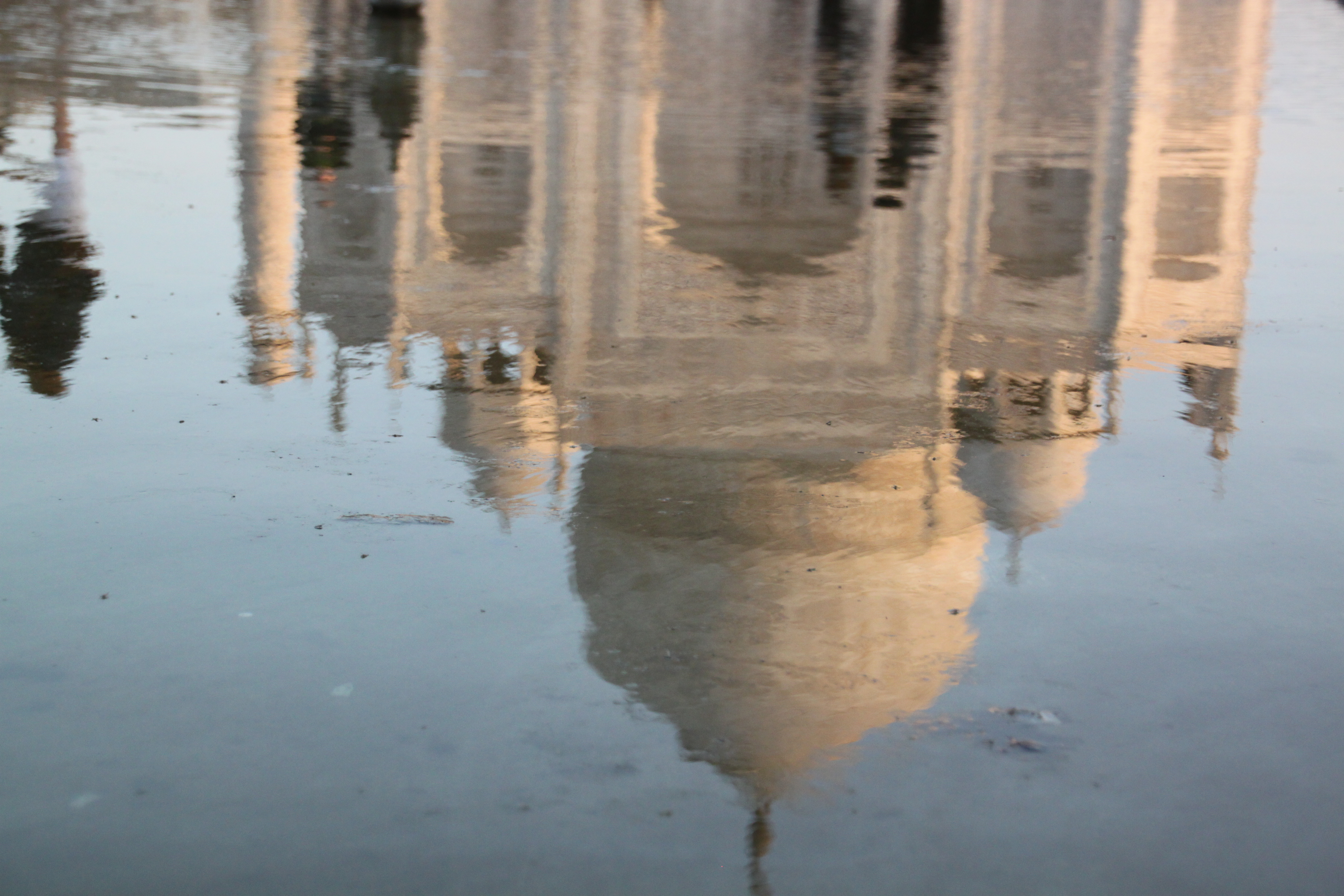 Al cabo de un rato nos salimos de la plataforma principal, Estela empieza a sentir un poco de frío, ¡claro, cómo no tiene nada de chicha! ¿o es que la ha dejado helada semejante monumento?. Yo en un acto de generosidad la presto la pasmina que la robé hace años a mi abuela y que me encanta, para que se arrope mientras nos dirigimos a una de las Mezquitas (Bueno, a la casa de huéspedes del lado este, por que la mezquita esta al otro lado, en el Oeste) y ambas son exactamente iguales para no romper la simetría y magia del lugar. Allí es donde al ir descalzas y estar todo lleno de cagaditas de pájaros, me doy cuenta que nos han vuelto a meter un gol….No nos dieron ni la botella de agua, ni la funda para los zapatos que supuestamente va incluida en la entrada. ¡India 3 – España 0!.